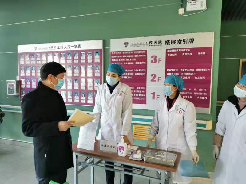 2月1日下午,校党委书记饶卫,党委副书记张玮、李宏,副校长刘宗立、郝淑美以及相关职能部门负责同志,先后来到呈贡校区学生宿舍、食堂、校医院、保卫处等,检查指导德赢官网疫情防控工作,并慰问留校值班的教职员工。