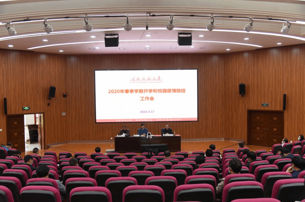 会议设有呈贡校区和联大校区两个主会场,各单位设分会场。全体与会人员首先参加了由省人民政府副省长陈舜主持召开的云南省2020年春季学期开学和校园疫情防控工作视频会议,听取了陈舜副省长,省委教育工委书记、省教育厅党组书记、厅长周荣以及省公安厅副厅长胡水旺、省卫生健康委督查专员谢馨莹等就做好全省2020年春季学期开学和校园疫情防控工作的安排布置。