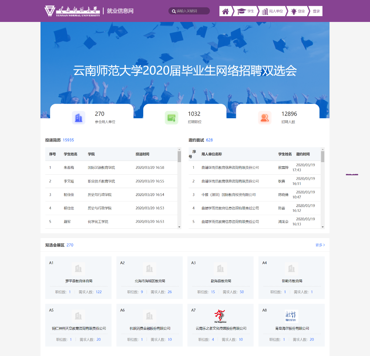为深入贯彻落实党中央、国务院有关高校毕业生就业的决策部署,落实云南省委省政府的工作要求,在云南省教育厅的精心指导下,德赢官网就业处于3月17-20日联合举办了德赢官网Vwin2020年毕业生网络招聘双选会。