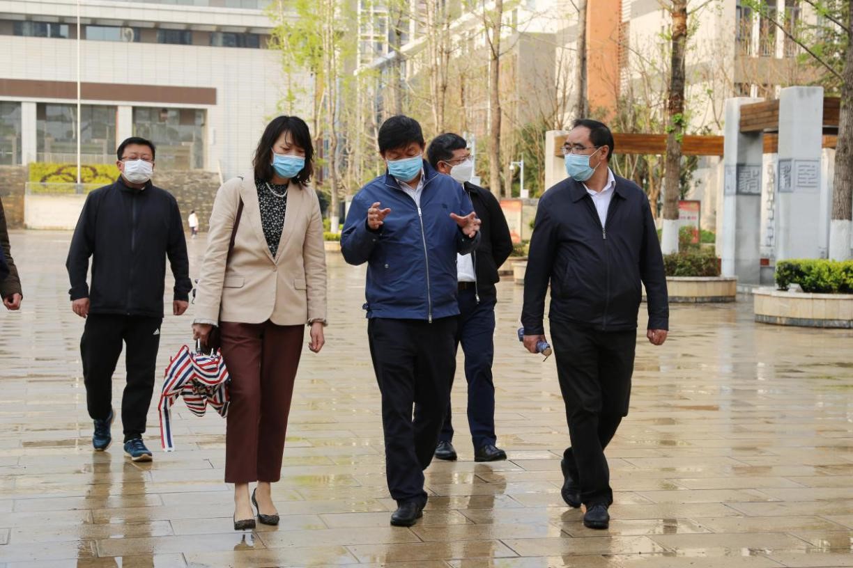 为及时了解开学后的疫情防控情况,3月23日下午,德赢官网Vwin党委书记饶卫、副校长丁文丽到学校进行检查指导,云南师大附中党委书记王朝训及学校相关领导向饶书记汇报开学前的防疫物资、师生健康状况排查、开学报到情况等工作。饶书记一行先后检查了学校初三高三年级教室、教师办公室、校医室、隔离观察室、学生宿舍、食堂等疫情防控措施落实情况。