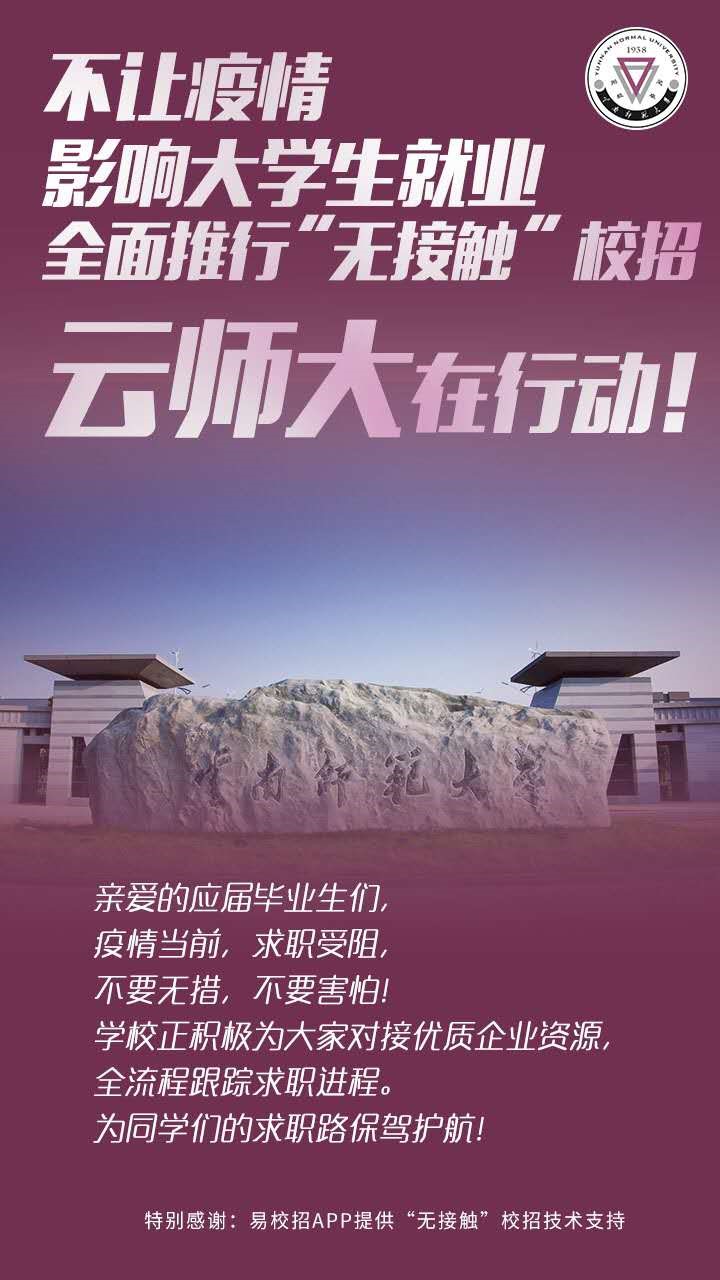 接下来,就业处将重点通过“一对一”服务举办校园网络专场招聘会。根据工作安排,由共青团中央青年发展部、共青团云南省委主办,德赢官网和智联招聘承办的2020届毕业生空中双选会将在3月30日举行,也是德赢官网第三场大型网络双选会。目前,双选会正筹备中,敬请广大师生、校友和企事业单位密切关注。