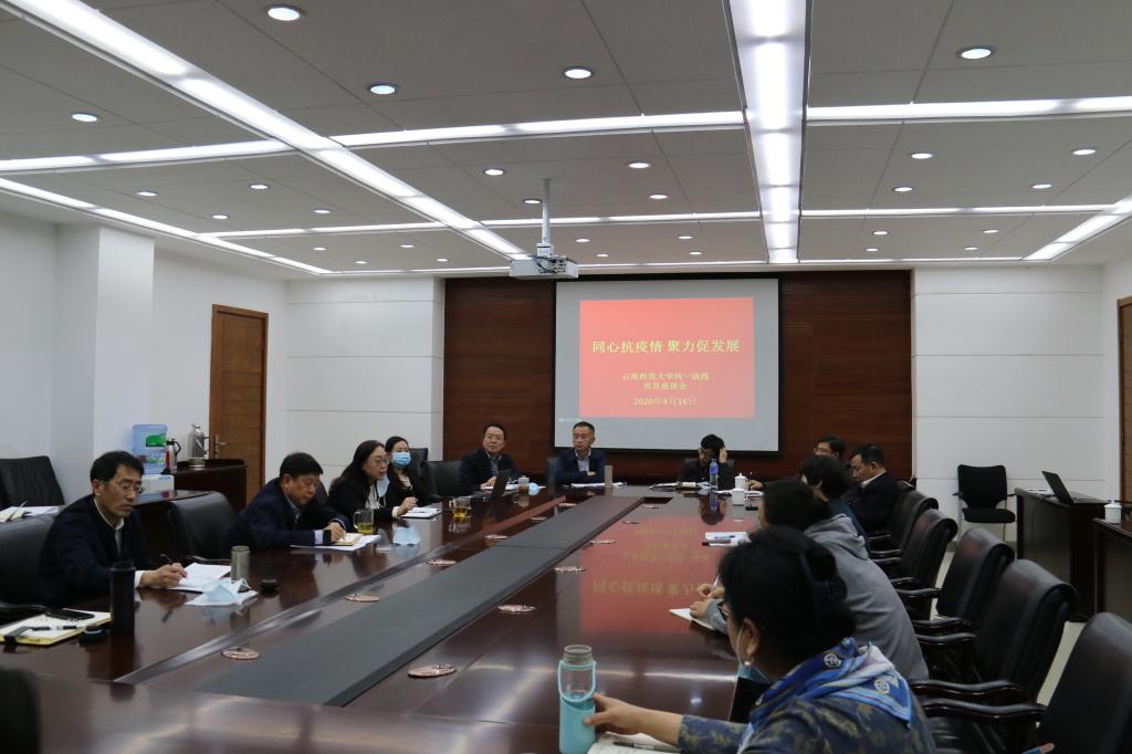4月16日下午,校党委在呈贡主校区行政楼211会议室召开学校统一战线“同心抗疫情,聚力促发展”双月座谈会,传达学习习近平总书记关于新冠肺炎疫情防控工作的重要指示和系列讲话精神,通报学校疫情防控的工作情况,听取各民主党派、统战团体和无党派知识分子代表对学校近期工作的意见和建议。校党委书记饶卫,校党委副书记张玮,副校长郝淑美,学校省级人大代表、政协委员,各民主党派基层组织主要负责人,党外知识分子联谊会、留学人员联谊会、侨联会负责人,党办、校办、组织部主要负责同志及统战部全体人员参加会议。