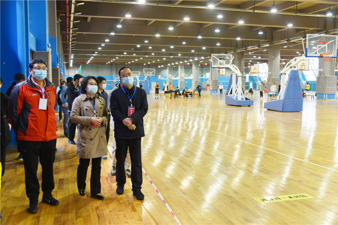 随后,蒋永文校长陪同高翔院长一行巡视了篮球、武术、足球、田径等考试场地,重点查看了各岗位的工作情况,详细了解了电子计时、现场录像、成绩录入等情况,慰问了一线工作人员,并与候考考生进行了亲切交流。