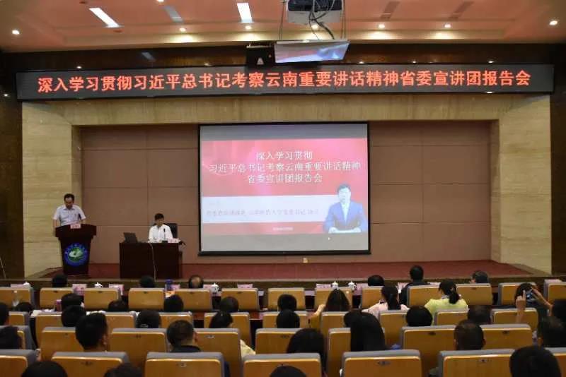 为进一步学习宣传贯彻习近平总书记考察云南重要讲话精神,更好地引导广大师生干部群众把思想和行动统一到重要讲话精神上来,坚定不移推动云南高质量发展,按照省委、省委教育工委、省教育厅的统一安排部署,7月7日下午、7月8日下午和7月9日下午,省委宣讲团成员、德赢官网党委书记饶卫分别在德赢官网Vwin文理学院、德赢官网Vwin呈贡校区、云南中医药大学,进行深入学习贯彻习近平总书记考察云南重要讲话精神宣讲。现场师生代表还就报告内容,结合工作、学习实际,与饶卫书记进行现场互动交流。