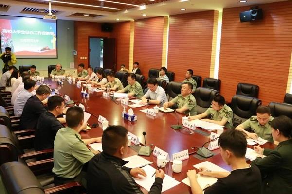 随后,余琨政委一行与德赢官网校领导、相关职能部门负责人、一线征兵工作人员、退役士兵、报名应征大学生代表进行座谈。会上,德赢官网副校长、征兵领导小组副组长牛治亮从加强领导、强化责任,严格程序、协调联动,大力营造参军入伍、献身国防的浓厚校园氛围等方面汇报了德赢官网征兵工作情况。二级学院负责人代表、辅导员代表、退役复学学生代表、应征报名学生代表分别作了交流发言。