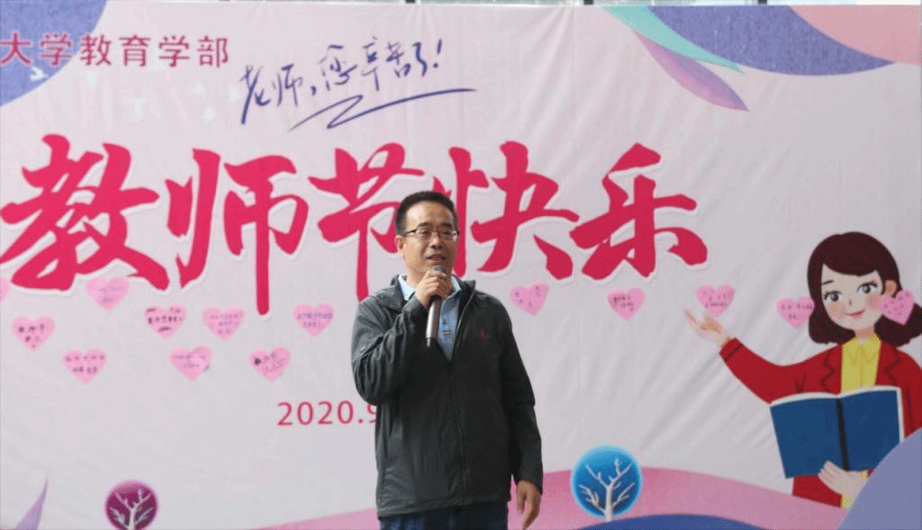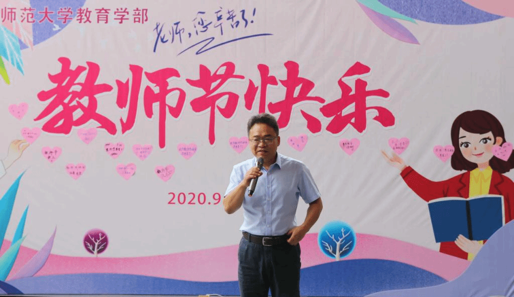 教育学部主任李长吉致辞,对全体老师致以节日的问候,并从中国传统文化的视角,为老师们解读了“什么是老师”,鼓励大家做一名好老师,统一思想、凝心聚力,以饱满的热情和昂扬向上的精神为学部的建设和发展贡献自己的力量。