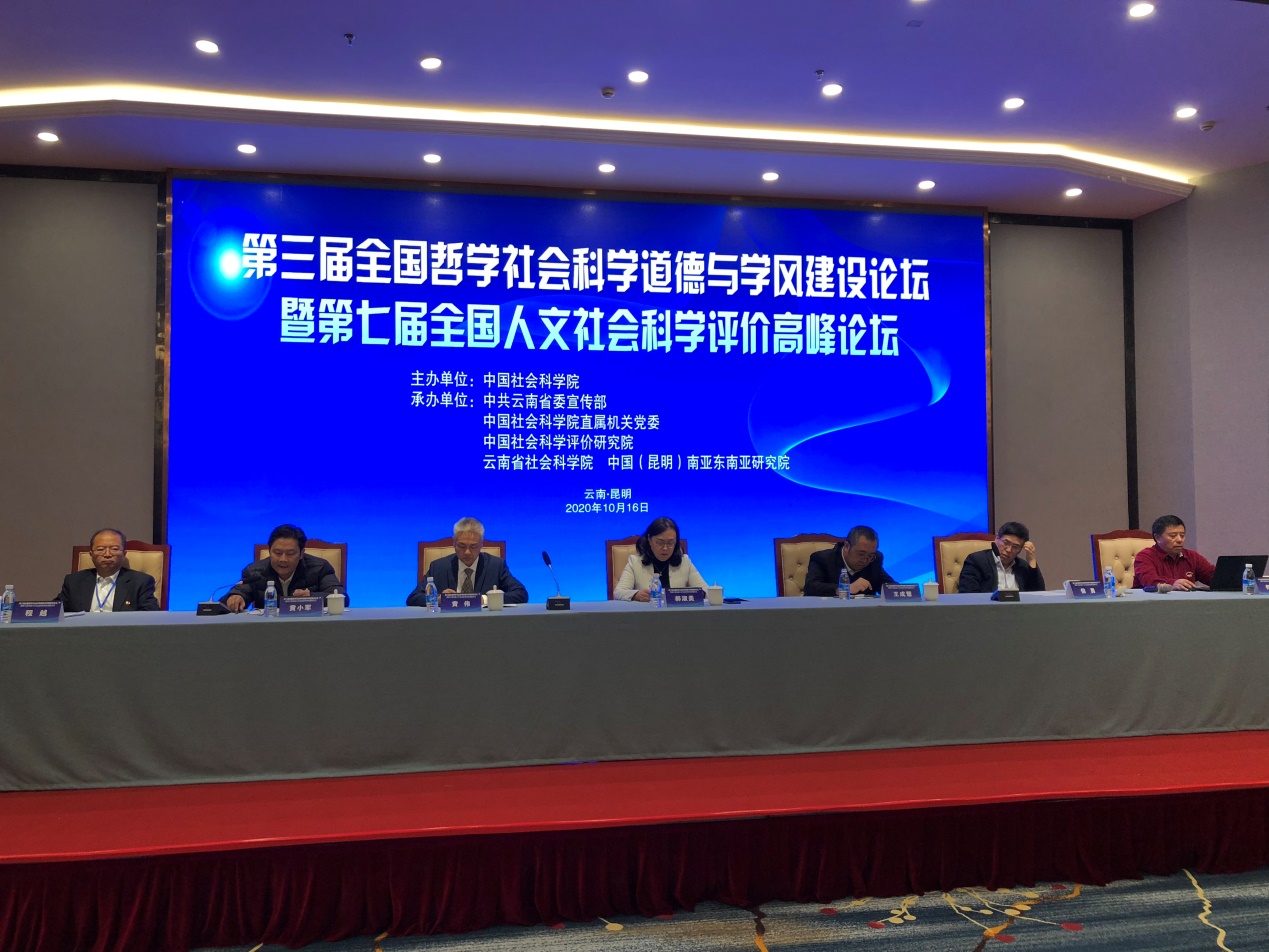 9月16日,“第三届全国哲学社会科学道德与学风建设论坛暨第七届全国人文社会科学评价高峰论坛”在云南昆明召开。本次会议由中国社会科学院主办,中共云南省委宣传部、中国社会科学院直属机关党委、中国社会科学评价研究院、云南省社会科学院 中国(昆明)南亚东南亚研究院等单位承办。中国社会科学院副院长、党组副书记王京清,云南省委常委、省委宣传部长赵金出席了本次论坛并致辞。