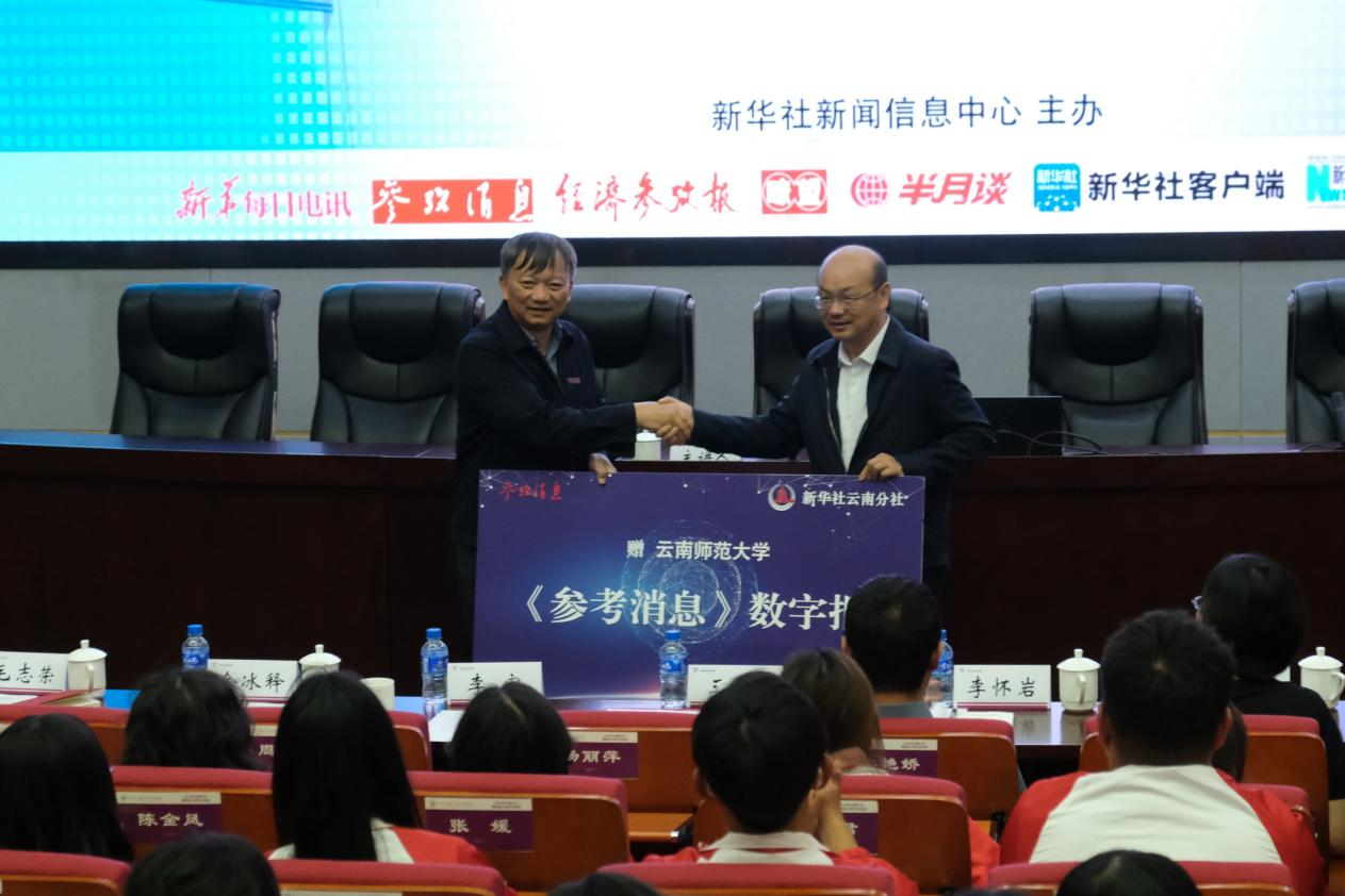 王江表示,新华社作为我们党最早创办和领导的新闻舆论机构,发挥着党的新闻舆论主力军、主渠道、主阵地作用;同时,新华社还肩负着向世界讲好中国故事的使命任务。德赢官网Vwin传承与西南联合大学师范学院,办学历史源远流长,成为培育教育英才的摇篮。2014年新华社与德赢官网Vwin签署战略合作协议,十年来,双方在云南舆情研究基地建设、教学与学生实习基地建设、新闻信息发布、人才联合培养等领域进行了合作探索,取得了良好的成效。希望通过“新华社进校园”系列活动的开展,能够助力云师青年进一步坚定理想信念,厚植家国情怀,加强品德修养,增长知识见识,把爱国情、强国志、报国行融入中国式现代化建设的伟大进程中,书写无愧于时代的青春之歌和精彩人生。