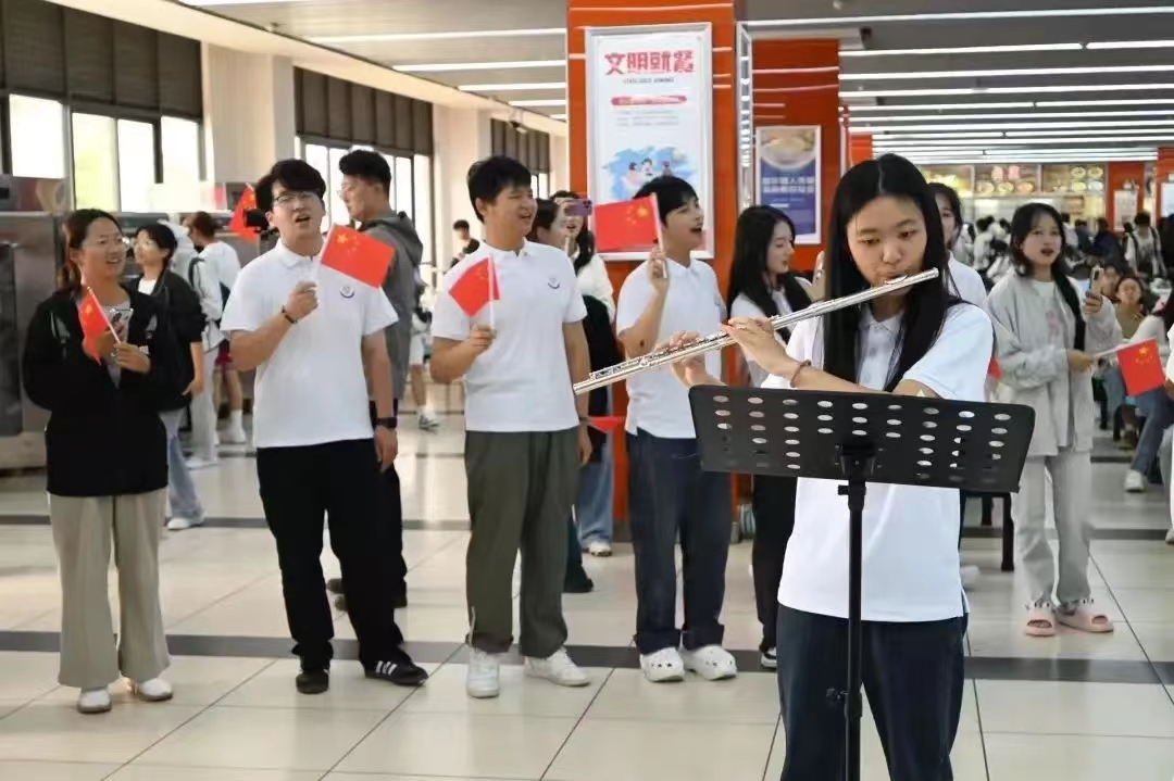 “歌唱我们亲爱的祖国,从今走向繁荣富强……”活动现场,师生们挥动着手中的五星红旗,以满腔的热情、真挚的情感唱响《歌唱祖国》,用歌声表达对祖国的祝福,祝愿我们伟大祖国山河无恙;祝愿我们伟大祖国繁荣昌盛。