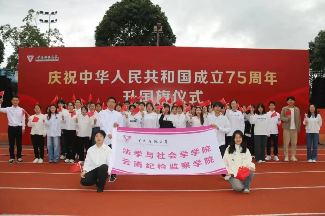 本科生黄瑜、硕士生杨翔程、博士生周佳露作为学生代表在国旗下献词,分享了新时代云师青年对祖国的热爱与深情告白。黄瑜表示要以刘朝栋、刘浩等云师奥运健儿为榜样,用汗水和努力诠释为国争光的真正意义,“我们要铭记历史,将个人理想融入祖国建设,以行动表达对祖国的热爱,用奋斗铸就美好未来。”杨翔程动情地说:“我将一如既往深入田间地头,将论文写在祖国大地上,用实际行动服务乡村全面振兴。”周佳露表示,作为新时代青年,要将西南联大精神融入学习、研究、工作中,锤炼个人才干,以实干笃定前行。