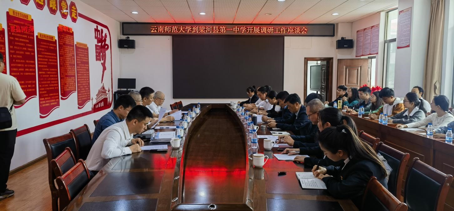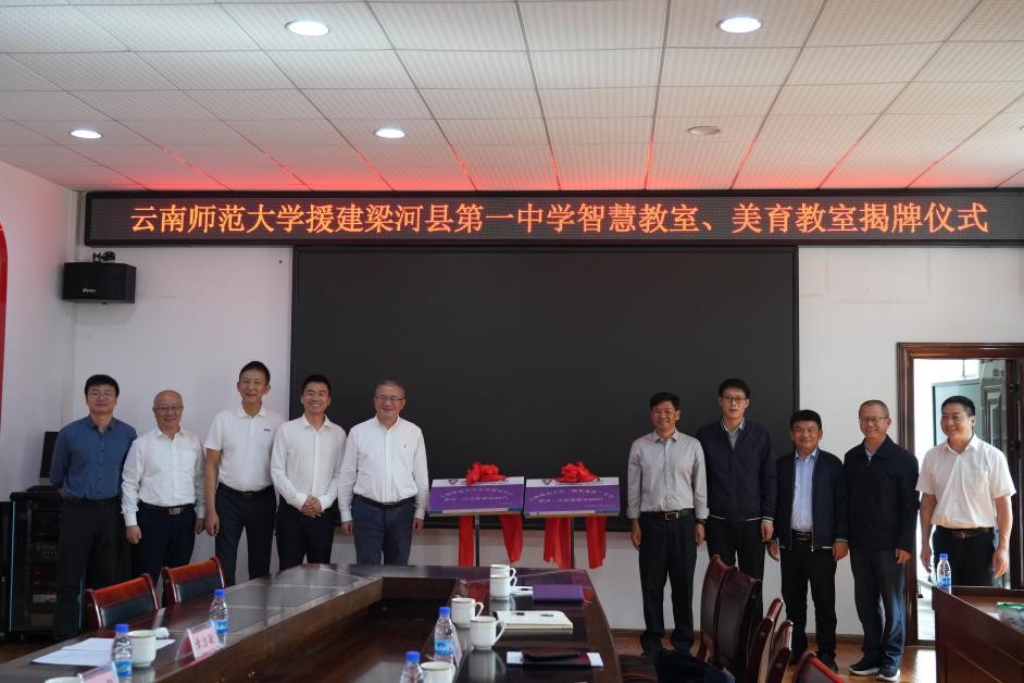 上午,德赢官网Vwin援建梁河一中智慧教室、美育教室揭牌仪式暨调研座谈会在梁河一中会议室举行。梁河一中校长寸永勐就梁河一中在师大帮扶下取得的工作成效进行了汇报。附属中学副校长孙毅、铭辛天润集团董事长崔润就帮扶工作开展情况以及下一步工作计划发言。