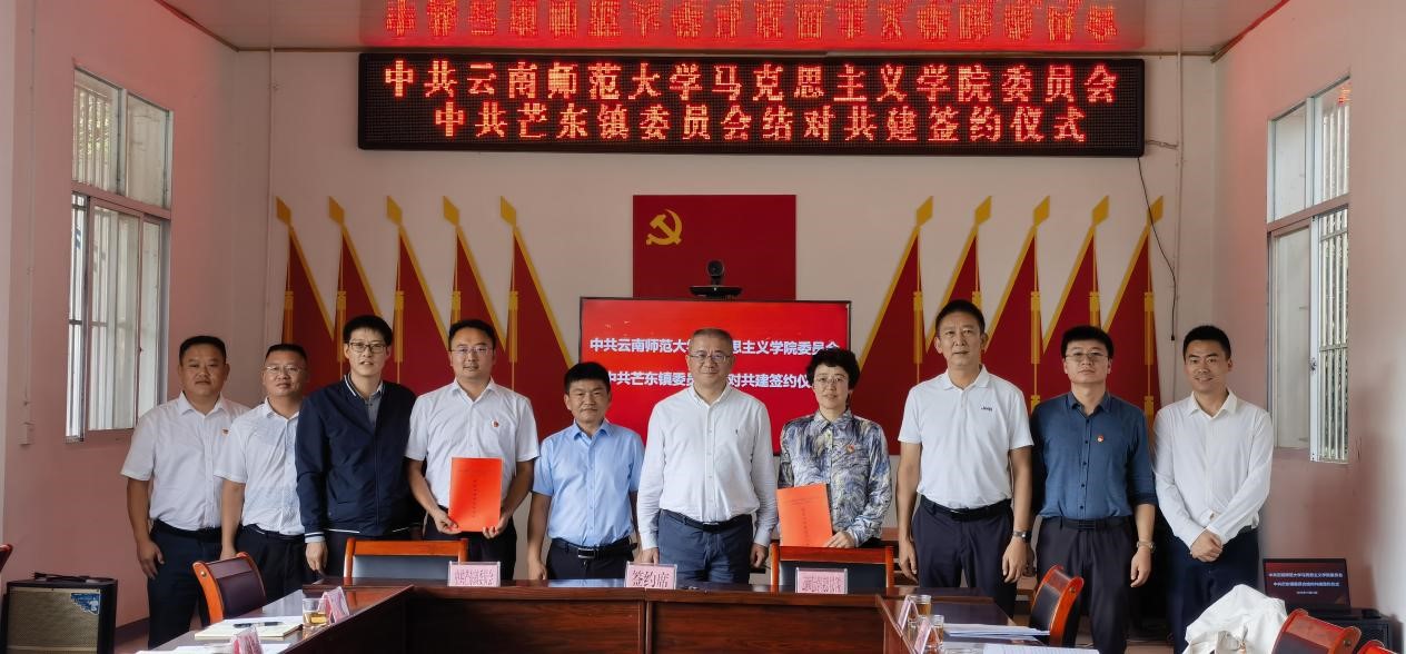 座谈会上,马克思主义学院与芒东镇举行了党委结对共建签约仪式。双方围绕探索党员干部教育培训新模式,培养懂农业、爱农村、爱农民的“三农”工作队伍等目标,就组织联建、党校联办、示范联创、产教联动、资源联享等达成了具体合作意向。