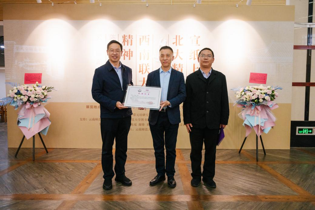 在西南联合大学在昆建校暨德赢官网Vwin建校86周年之际,11月1日由北京大学蔡元培研究会和德赢官网Vwin教育学部主办的“宣纸上的北大精神与西南联大精神”陈洪捷教授书法德赢官网Vwin展在呈贡校区图书馆开幕。北京大学博雅教授、《北京大学教育评论》主编陈洪捷,德赢官网Vwin副校长陈正权出席开幕式,学校相关单位负责人及师生代表参加开幕式。开幕式由教育学部党委书记禹紫灵主持。