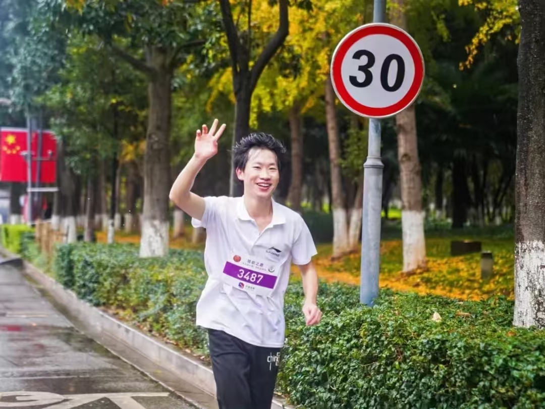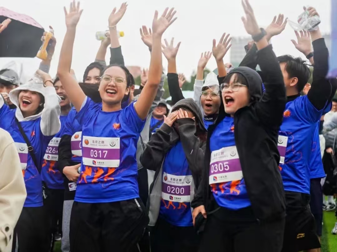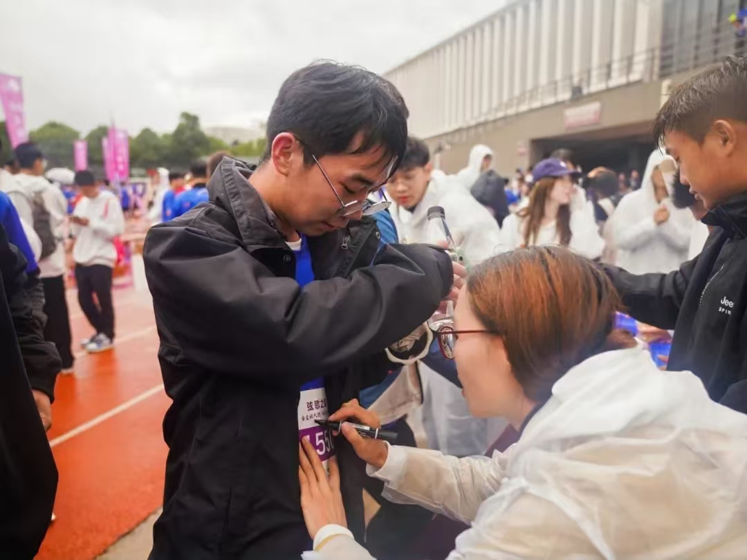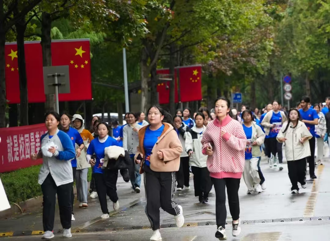 此时天空中下着小雨,但运动员们精神焕发、信心满满,大家在雨中热情奔跑,展现了新时代青年的活力与风采。“今天我的心情无比激动。这已经是我第二次参加校园跑活动了。虽然跑步时下着小雨,气温也比较低,但学校贴心地为我们准备了很多,让我们能更好地享受跑步的过程。”第一个冲线的同学王庭辉激动地说。