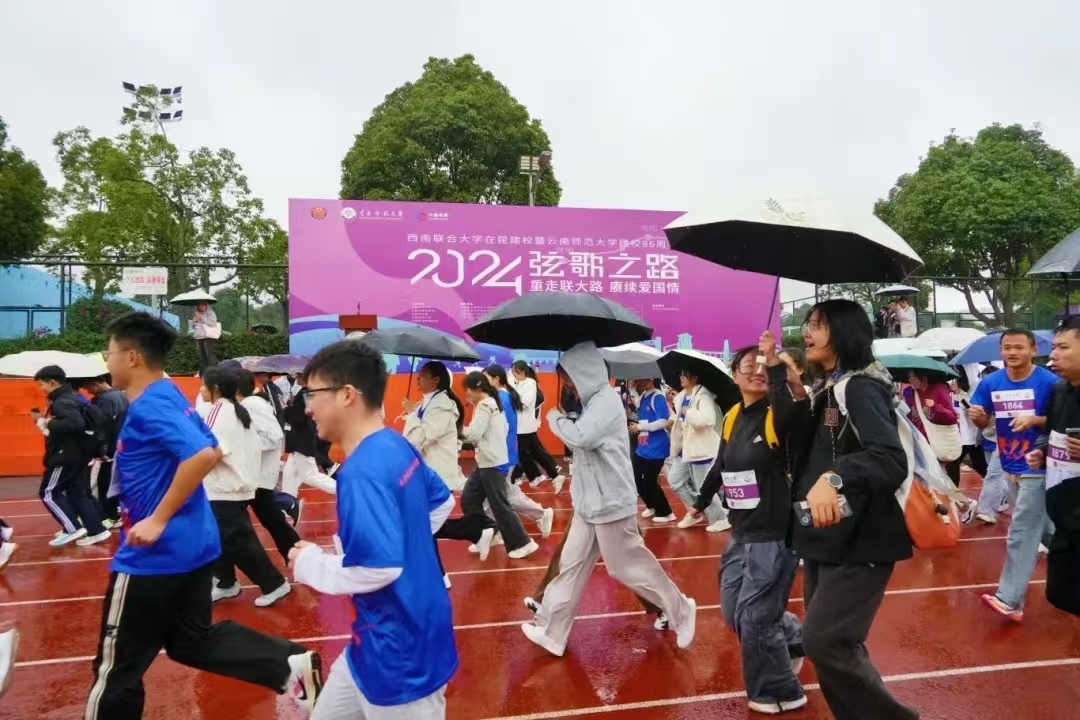 校园跑不仅考验个人的耐力、毅力与决心,更是一场自我超越的旅程。运动员们迎着风雨,用汗水和坚持在跑道上留下自己的足迹,书写自己的青春故事,践行着西南联大刚毅坚卓的校训精神。