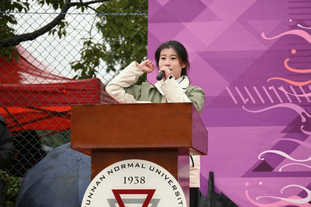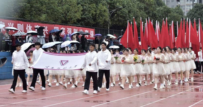 “明德问道,化成天下”,教育学部师生踏着坚定的步伐走向主席台;“信息领航,斗志昂扬”,信息学院师生精神抖擞、气宇轩昂;“经世致用,学贯中西”,经济学院师生气势如虹,展示着青春的活力与激情;“挑战自我,超越极限”,化学化工学院师生昂首阔步,意气风发;”心怀梦想,志在远方“,传媒学院师生朝气蓬勃,以拼搏诠释传媒人的风采.....各学院运动员方阵以饱满的精神状态,无畏风雨,尽展云师风采。