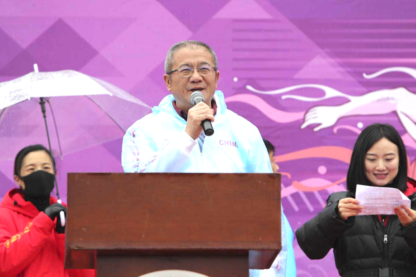 升国旗,奏唱国歌。张祖武宣布第五十四届田径运动会暨第七届体育节开幕,现场响起热烈的欢呼声。