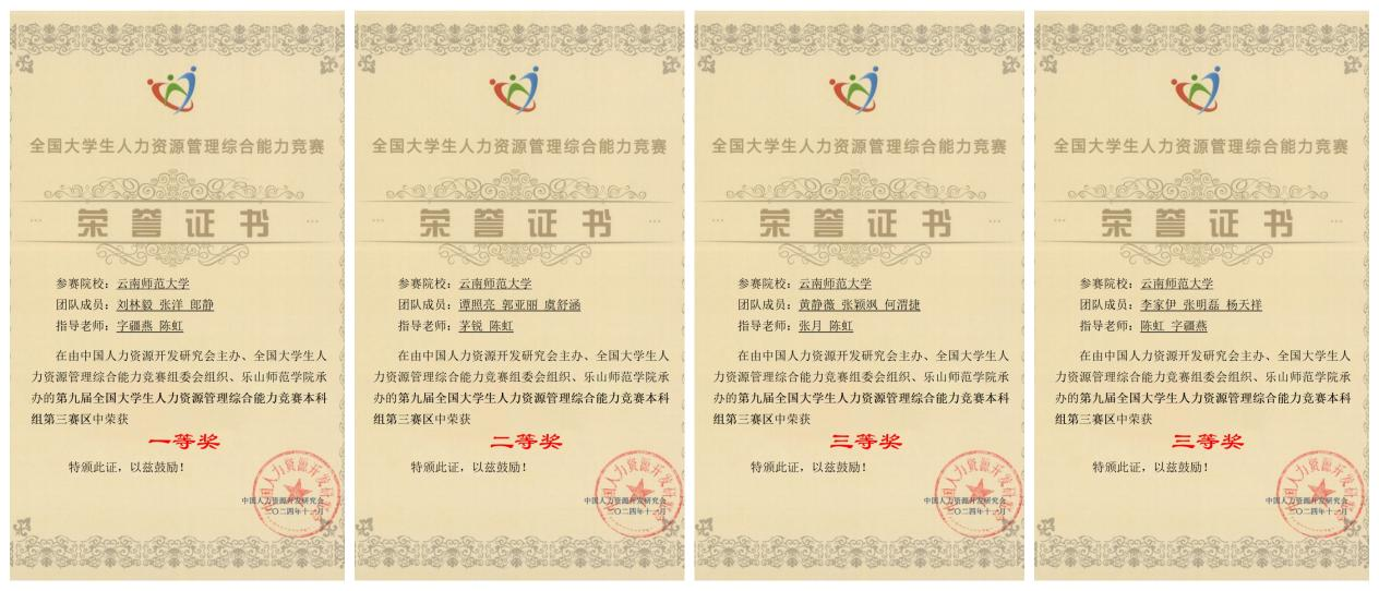 近日,由中国人力资源开发研究会主办,乐山师范学院承办,浙江精创教育科技有限公司提供技术支持的第九届全国大学生人力资源管理综合能力竞赛(B类第48项)本科组第三赛区顺利完赛。德赢官网教育学部代表队获一等奖和二等奖各1项,三等奖2项。