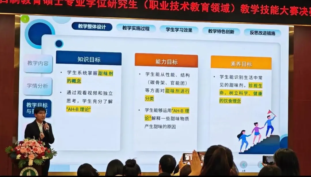 本次大赛中3位选手的优秀表现,展示了职业技术教育专业研究生综合素质和创新能力,也体现了职业技术教育学院对硕士研究生综合实践教学能力的重视与培养成效。下一步,学院将进一步加强研究生“双师”能力培养,持续提高人才培养质量,为职业院校输送更多高层次、高素质师资人才。