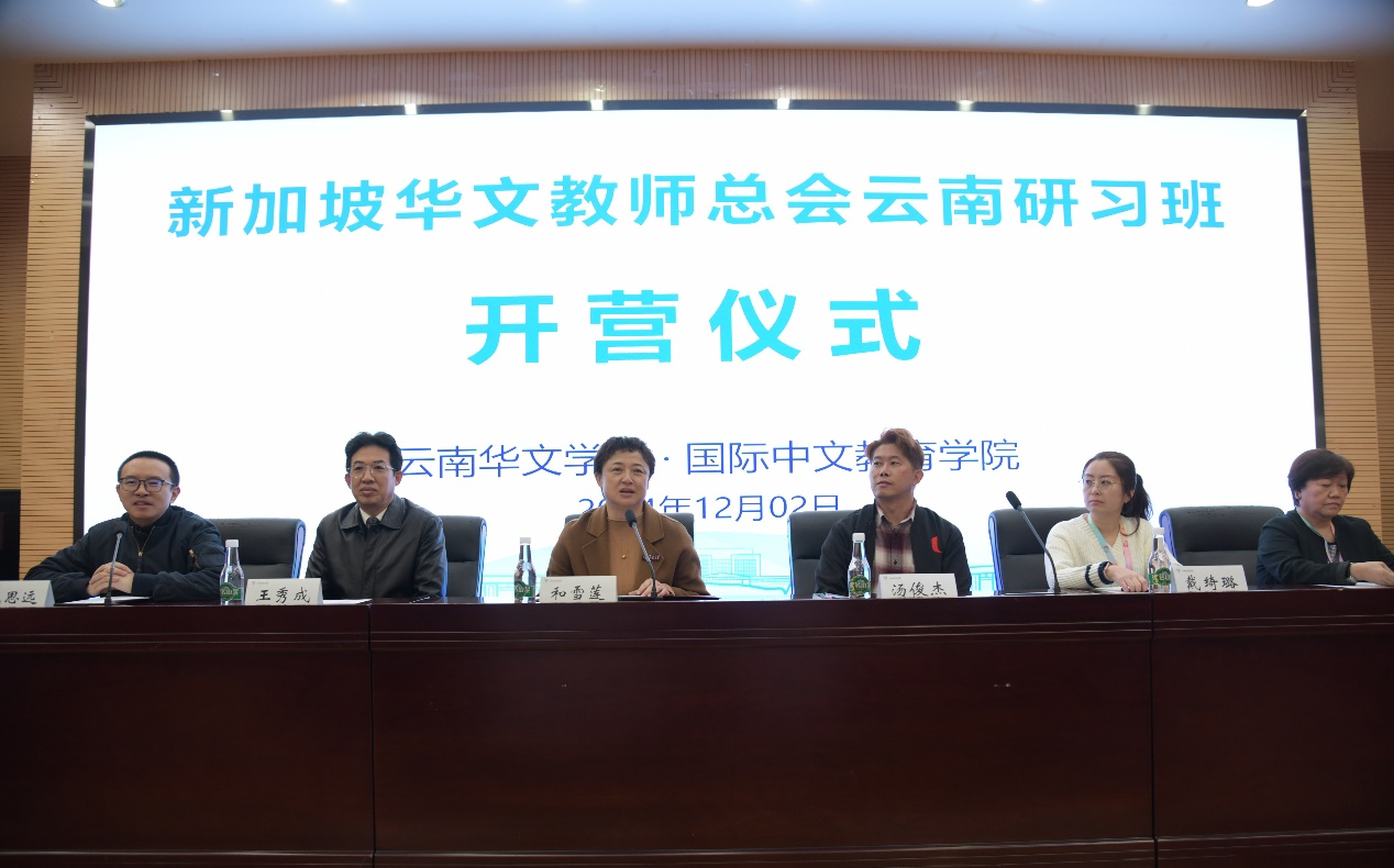 12月2日上午,新加坡华文教师总会云南研习班在德赢官网开班。云南华文学院党委书记和雪莲、院长王秀成,新加坡华文教师总会理事长汤俊杰、咨询顾问连慧英及相关人员参加了开班仪式。