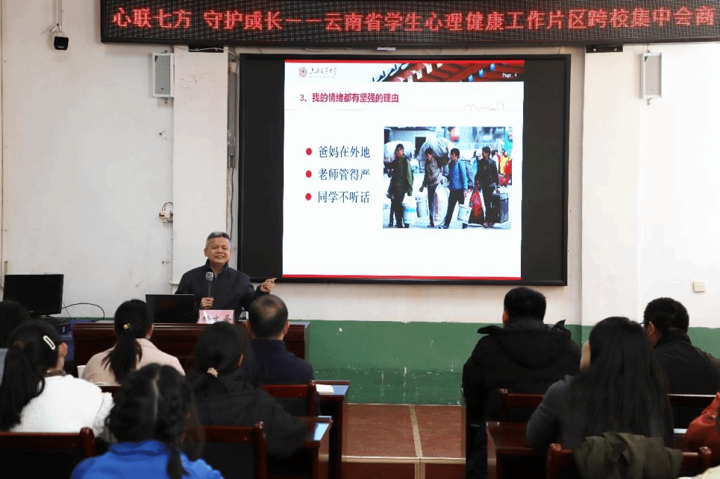 为进一步服务片区内学校心理健康教育工作,构建多方联动的心理育人格局,12月4日至7日,“心联七方 守护成长”云南省学生心理健康工作片区跨校集中会商在楚雄彝族自治州大姚县石羊镇举办。本次会商由云南省委教育工委、云南省教育厅主办,云南省学校心理健康工作专家指导委员会秘书处(德赢官网Vwin)、云南省学校心理健康教育师资培训与研究中心、德赢官网Vwin心理健康教育咨询中心承办,昆明市、曲靖市、楚雄州、昭通市、大姚县等多地教育体育局,大姚县委宣传部、大姚县民政局、大姚县石羊镇党委、省委党校驻村工作队、楚雄师范学院等单位协办。大姚县民政局党组成员、副局长张兰,大姚县民政局社会事务和儿童福利股副股长施剑平,大姚县教育体育局青少年活动中心主任郭丽蓉,石羊镇党委副书记李俊聪,省内外心理健康教育专家,云南省学校心理健康工作专家指导委员会委员代表,心理健康教育专兼职教师及学生代表等150余人现场参与,近4000人线上同步参会。