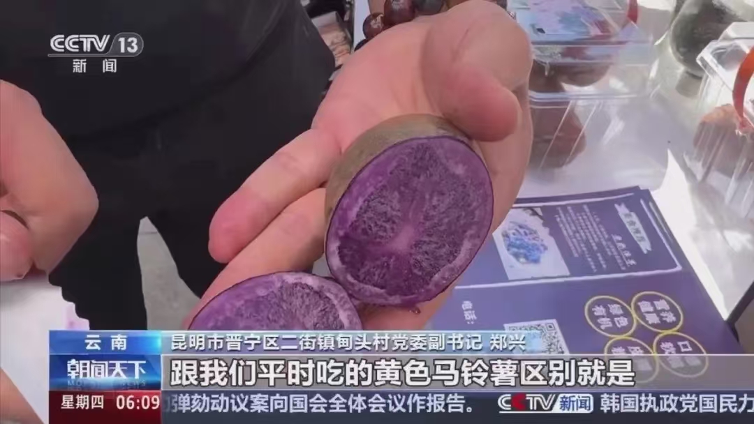 日前,央视新闻频道《朝闻天下》对第四届西部农民工返乡创业大赛暨返乡创业产品展示活动进行报道。来自晋宁区二街镇马铃薯科技小院的紫色洋芋受到了关注。