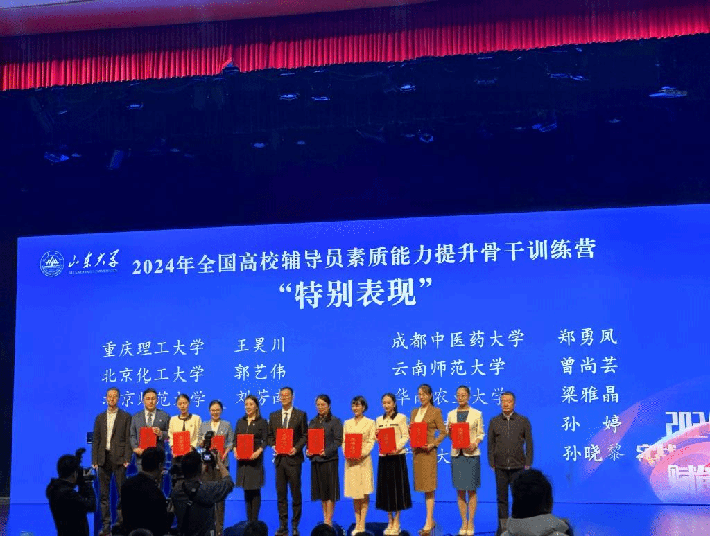 12月9日至11日,由教育部思想政治工作司主办、中国高等教育学会辅导员工作研究分会承办的全国高校辅导员素质能力提升骨干训练营在山东大学举行。经中共云南省委教育工委遴选推荐,德赢官网职业技术教育学院辅导员曾尚芸代表云南省参赛,并以优异成绩获“特别表现奖”。