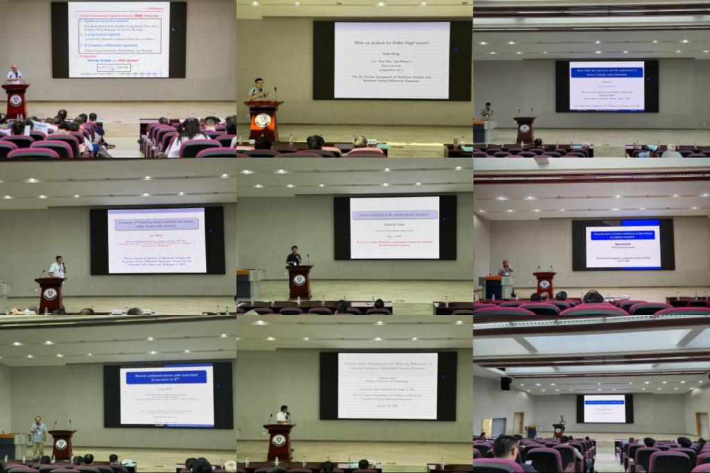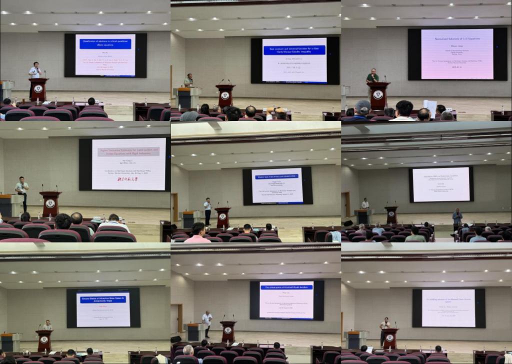 四川大学吕克宁教授,中国科学技术大学麻希南教授、陈世炳教授,北京大学蒋美跃教授,华东师范大学周风教授,华中师范大学郭玉劲教授、罗鹏教授,南开大学段华贵教授,北京师范大学李海刚教授,武汉大学王克磊教授、敖微微教授,武汉理工大学曾小雨教授,江苏大学王俊教授,北京航空航天大学戴蔚教授,浙江师范大学徐甜教授,湘潭大学孙林林教授,中南大学胡烨耀教授,中国科学院数学与系统科学研究院孙黎明副研究员,德赢官网Vwin欧乾忠教授,香港中文大学吴轲博士等国内外专家学者带来了26场高水平学术报告。主题覆盖无穷维动力系统、Hardy-Mazya-Sobolev不等式、Stokes方程、Bose气体的基态、对偶Minkowski问题、Keller-Segel系统等偏微分方程领域的热点领域。