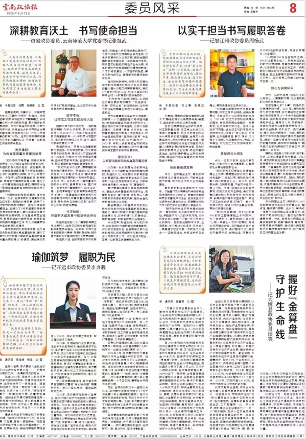 采访结束时,张祖武说,无论时代如何变化,这份教育的初心不会变。作为政协委员,他将继续为云南教育建言献策;作为学校党委书记,他将带领云南师大培养更多扎根云岭、服务人民的优秀人才。这份坚守与担当,正是一位教育工作者最美的风采。