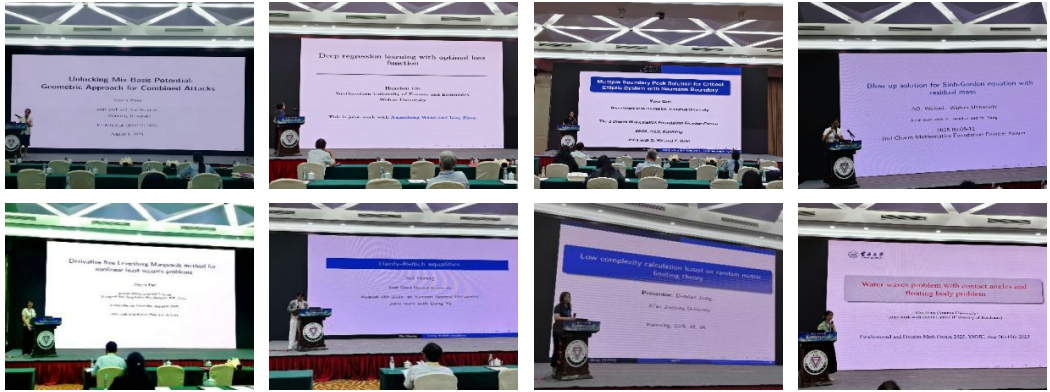开幕式后的学术报告环节。赵桂萍研究员聚焦“国家自然科学基金数学学科及女性资助特点”展开深度解析;周向宇院士以“商高的数学思想与成就”为主题,从历史维度梳理了中国古代数学智慧的传承与价值,为当代数学研究带来启发;张伟平院士分享“陈省身先生对中国数学的贡献”,通过回顾数学大师的学术轨迹与育人理念,展现了老一辈数学家为学科发展奠定的坚实根基与精神传承;李惠院士聚焦前沿交叉领域,讲授“微分方程大数据生成与大模型求解方法”,呈现了数学理论在应对复杂数据问题时的创新应用路径。专家学者的报告内容丰富、视角多元,带来一场兼具思想深度与学术高度的数学分享。