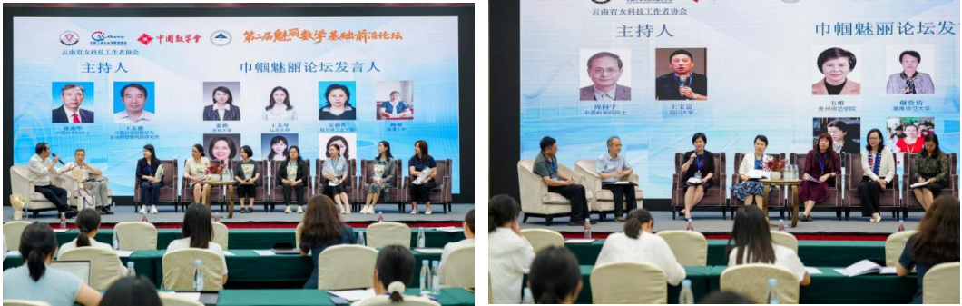 8月9日晚上,论坛专门开设女性科研工作者交流专场,云南省女科技工作者协会、德赢官网Vwin心理健康教育咨询中心参与了活动,活动由席南华院士、周向宇院士、王友德研究员、王宝富教授共同主持。来自清华大学、西安交通大学、湘潭大学、河北师范大学等高校的12位女性学者围绕“科研创新与性别平等”“女性学术生涯发展路径”等议题分享经验,呼吁社会各界为女性数学工作者创造更包容的发展环境。