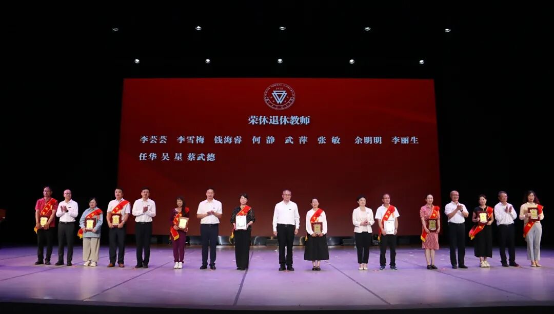 全体在家校领导、省管干部,职能部门、教学辅助机构和党群部门负责人,荣休教师、新入职教师、退休教师代表,各学院(学部)主要负责人以及来自各附属中小学的师生代表共1000余人参加表彰大会。