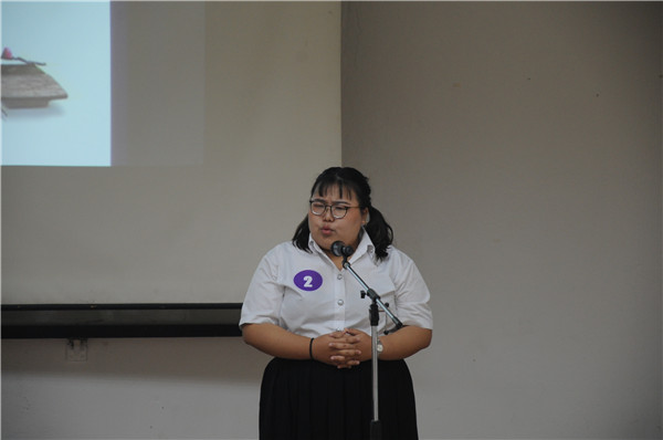 本次比赛围绕着“我最喜欢的中国元素”展开4到5分钟的主题演讲,选手们准备充分、精神饱满,展示出了各自热爱的中国元素。有的学生喜欢中国明星、中国制造,有的学生喜欢“剪纸”、琵琶,有的学生因为中国古代装束而喜欢中国电视剧,有的学生因为小时候摔断腿被中医接骨治好而喜欢接骨,还有的学生陈述了儒家经典—“听其言观其行”。学生们选题灵活,或俏皮可爱或内容深刻。