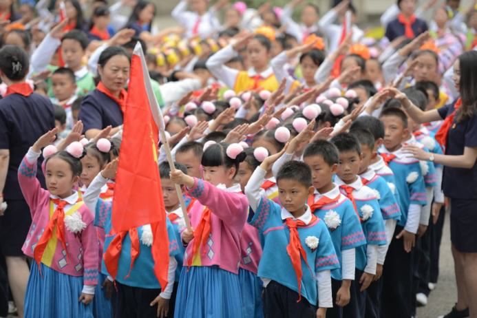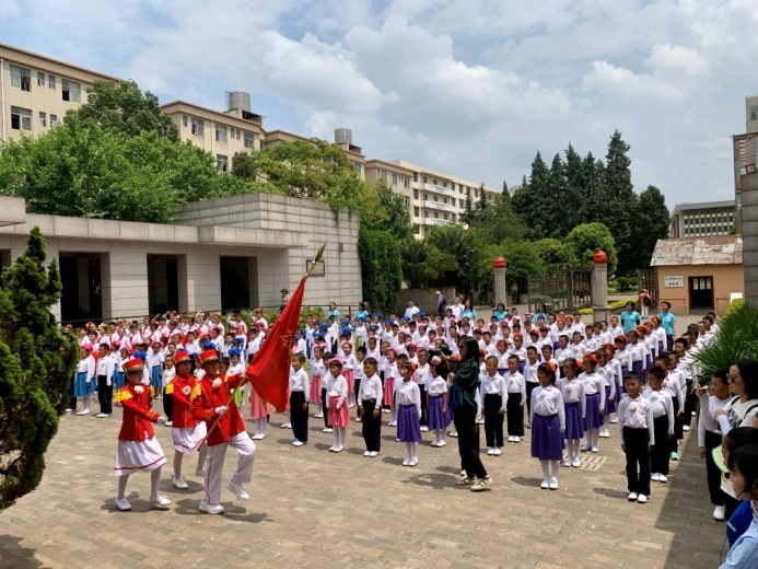 队歌嘹亮,领巾飘扬。在2019年六一国际儿童节到来前一周,来自德赢官网Vwin附属小学1600余名一年级学生在老师的带领下,来到德赢官网Vwin校园内的西南联大旧址“一二·一”运动四烈士墓前,开展瞻仰革命先烈、祭扫烈士陵园活动,并在这里举行少先队入队仪式。