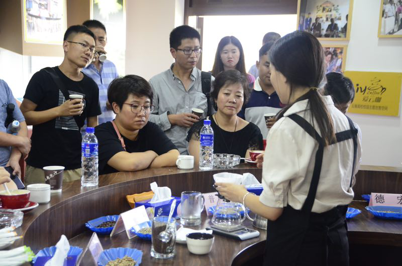 当天师生一行在云南咖啡厂了解中国联合国咖啡项目,实地对咖啡加工产业发展进行了解交流。在品鉴室品鉴了云南各产区咖啡豆。