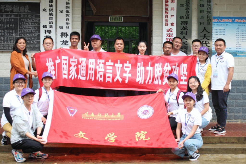 为贯彻落实《中共云南省委高校工委 云南省教育厅 共青团云南省委关于组织开展推广国家通用语言文字主题社会实践活动的通知》的文件精神,加快推进“直过民族”地区国家通用语言文字普及推广,7月21日—7月26日德赢官网文学院副院长周春林、辅导员苏俊、组织员郭起凤等师生一行12人组成宣讲团赴临沧市耿马傣族佤族自治县开展为期一周的推广国家通用语言文字主题社会实践活动。