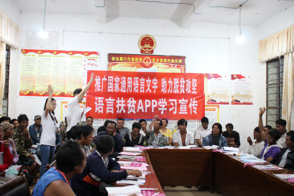 此次推广国家通用语言文字主题社会实践活动主要以“普通话培训、创建普及普通话示范村、推广语言扶贫APP”为主要活动内容,先后深入耿马县四排山乡老寨村和关弄村、孟定镇得龙村展开推普宣传活动。