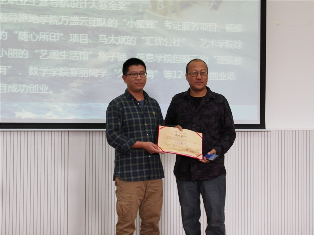 讲座开始之前,就业处李映松老师为白宇老师颁发了求道论坛嘉宾纪念证书。