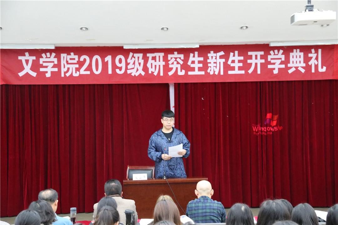 老生代表牟婕同学分享了自己的读研经验,并向新生提出了三个问题――“你关心自己的身体吗?”“你还有几分热情?”“你对文学院的感情有多深?”,引发了同学们对自身、对社会、对国家的思考。