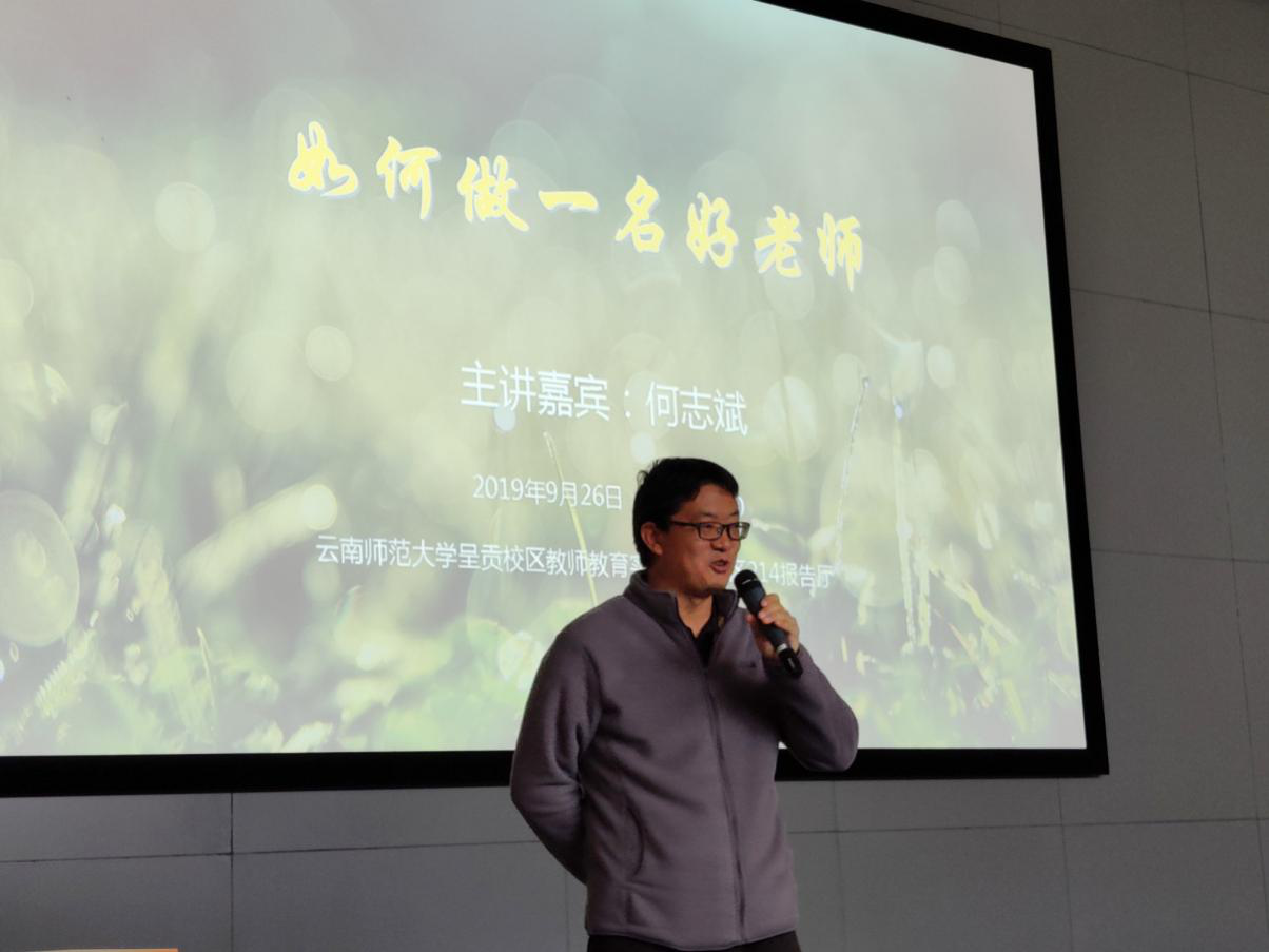 为凸显德赢官网教师教育的办学特色,进一步加强对师范生的就业指导力度,全面提升德赢官网师范生的综合素质和就业能力,“名师讲坛”第九期主讲嘉宾——云南省下关一中初中部开发区校区副校长、语文高级教师何志斌于9月26日在德赢官网呈贡主校区教师教育实训大楼Ⅱ区214报告厅做主题讲座,各学院带队教师、学生代表、就业处相关工作人员共计200人参加了本次讲座。