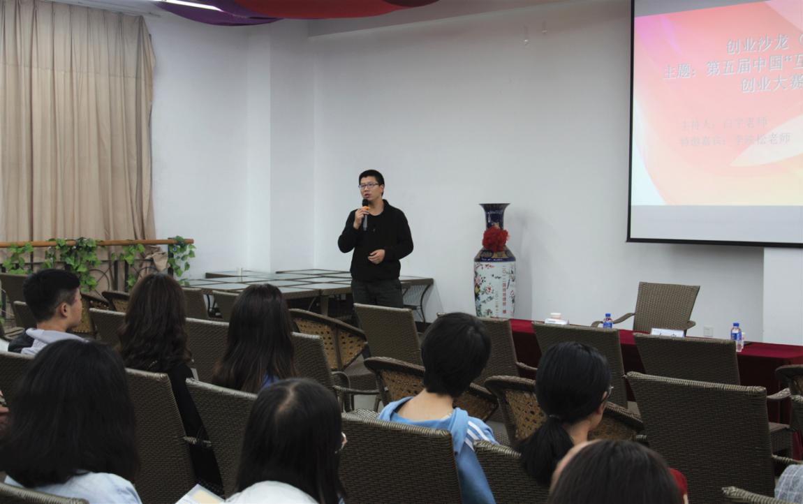座谈会开始前,白宇老师首先简述第五届中国“互联网+”大学生创新创业大赛分享会这一主题的背景,道出学生积极参与其中的重要性与必要性。紧接着,李映松老师以“我眼中的大学生创新创业比赛”为主题展开分享,先通过大赛宣传视频引入话题,简单总结了此大赛的起源和德赢官网取得的突破性成绩。并以德赢官网2019年荣获国赛银奖项目“中诺教育”为例,介绍这个项目的方向及准备、参赛过程,让同学们对这个万众瞩目的全国大赛有了初步的了解。然后,李老师通过播放今年的冠军清华大学团队“无人直升机”项目视频,表达了他的个人观点:作为大学生,唯有深入专业教育,培养学习习惯、加强思维训练、拓宽看待事物的视野与角度、树立创新创业精神与意识,才能在当今时代下紧跟潮流。