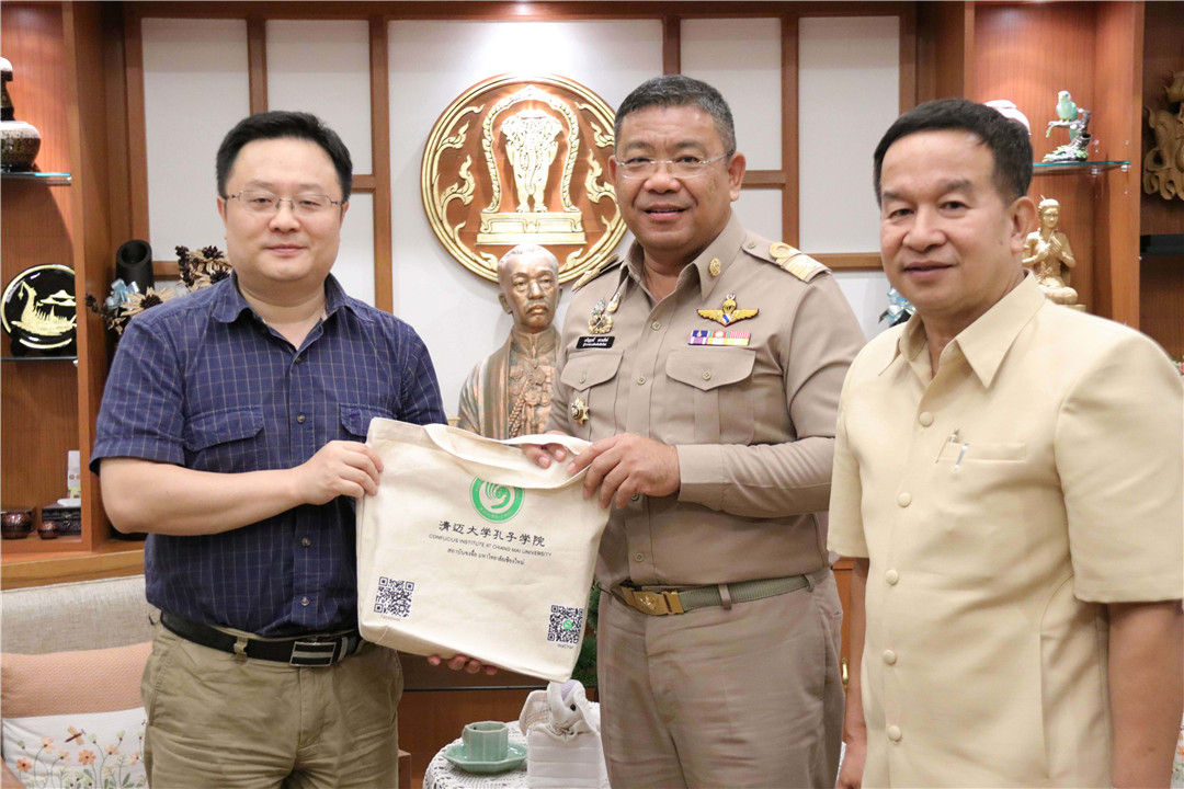 10月22日下午,清迈大学孔子学院沈毅院长一行在清迈行政公署行政大楼的清迈府尹会客室与十月初新上任的清迈府府尹扎冷力·沙坤萨(Charoenrit Sanguansat)进行了会谈。清迈府教育厅厅长基迪塔内·潘帕努查(kittithanet phanphanuchat)、清迈府护照处主任陈金盛(Sittikorn Chanthadansuwan)出席会谈。