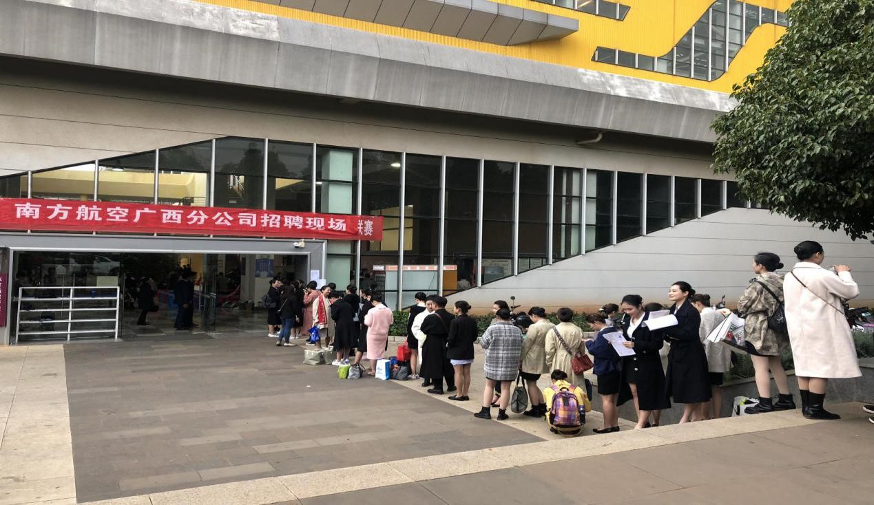 2019年11月13日,中国南方航空股份有限公司广西分公司针对大三、大四在校生的招聘活动在德赢官网东区体育馆雏鹰馆举行。经过初试、复试环节,德赢官网空乘专业23名同学通过考核,除了复试之外,后续还有试装、体检、笔试等考核环节。招聘活动吸引了云南多所院校空乘专业和其他专业600余名同学参加。