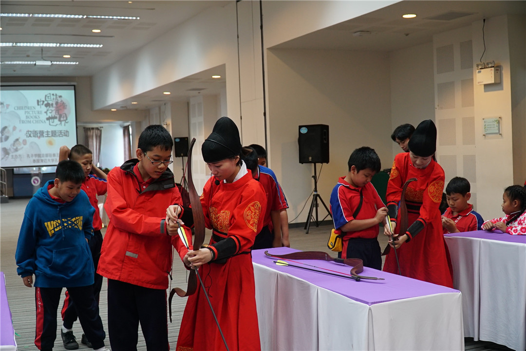 “一张一弛,乃文武之道也”。在中国传统“孔子六艺”之射仪的专场上,学生们对射艺表示出了极大的好奇心,在老师的耐心指导下,当成功地射出第一支箭时,他们欢呼雀跃,感受到了中国传统射仪的魅力。