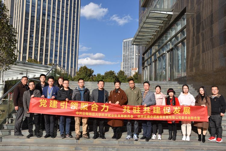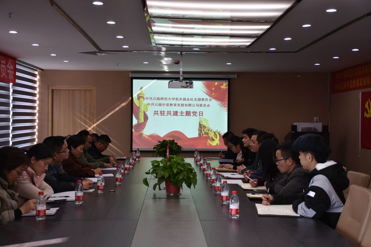 为认真贯彻落实党建工作责任制,切实发挥基层党组织的战斗堡垒作用,结合“不忘初心、牢记使命”主题教育,深入基层开展用人单位调研,2020年1月2日,就业处支部委员会与中共中诺教育团委员会在呈贡区上海东盟商务大厦C座9层中诺教育集团总部会议室开展“党建引领聚合力,共驻共建促发展”主题党日活动。德赢官网Vwin就业处全体党员同志和中共中诺教育团委员会主要负责同志参加了此次活动。