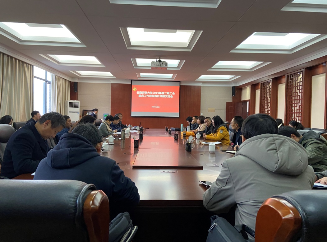 2019年1月3日上午,校工会组织全校30个基层工会开展“走基层、展风采2019年度二级工会考核交流活动”,此次考核交流活动在云南华文学院工会活动之家进行。校工会常务副主席金黄斌、副主席周争卉、吴永明,以及各学院、部门二级工会主席参加了此次活动。