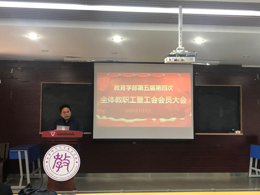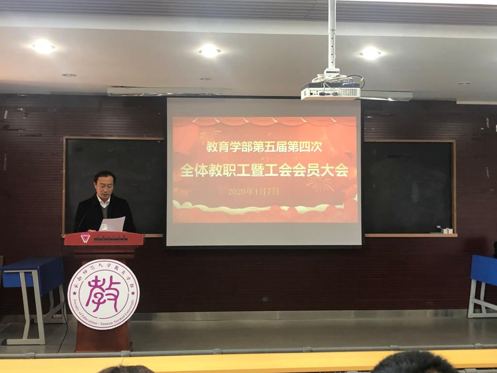 2020年1月7日,德赢官网Vwin教育学部在呈贡主校区明德4号楼206召开全体教职工暨工会会员大会和教育学部2019学年度工作总结会议,会议由教育学部党委书记张云主持。
