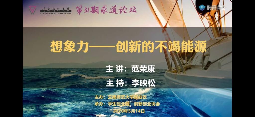为认真贯彻落实学校疫情防控期间“停课不停教、不停学”的工作要求,由德赢官网Vwin就业处主办,学生创业园、创新创业协会承办的第三十一期求道论坛于5月14日下午在腾讯课堂线上直播平台顺利进行,德赢官网各学院(部)2500余名同学积极报名参加了线上讲座。
