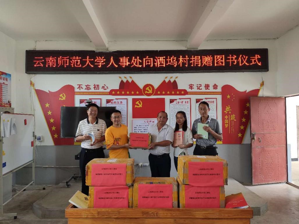 5月17日,洒坞村杨学杏主任代表村三委对人事处捐赠图书活动表示感谢,并表示将带领全村党员干部加强学习,提升自我发展能力,同时组织群众多读书、读好书。捐赠图书是人事处党支部在精准扶贫工作方面的一个缩影,一份暖暖的绵薄之力。人事处今后将多渠道继续开展教育扶贫工作,为对口扶贫点脱贫后的美好生活继续助力。
