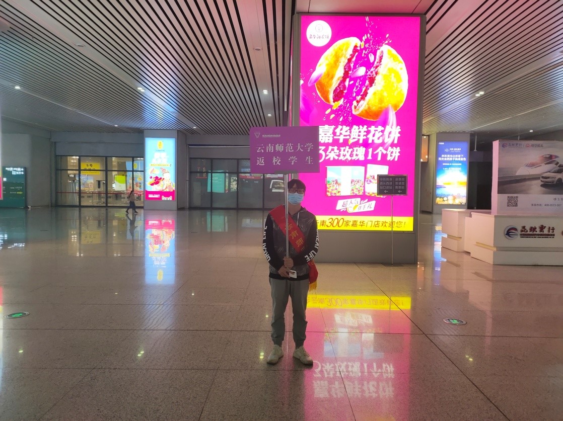 为做好学校2020年春季学期学生返校及各项防控工作,在学校党委领导下,后勤保障服务中心于5月27日组建党员志愿服务队,服务队队员由各学院师生党员和后勤党员组成,组建第2天,党员志愿服务队即奔赴昆明火车站、昆明南站、地铁口迎接返校学生,为学生返校做好服务工作,让返校学生第一时间感受到学校的真情与温暖。